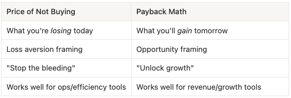 The difference between “The payback math” and “The price of not buying”.