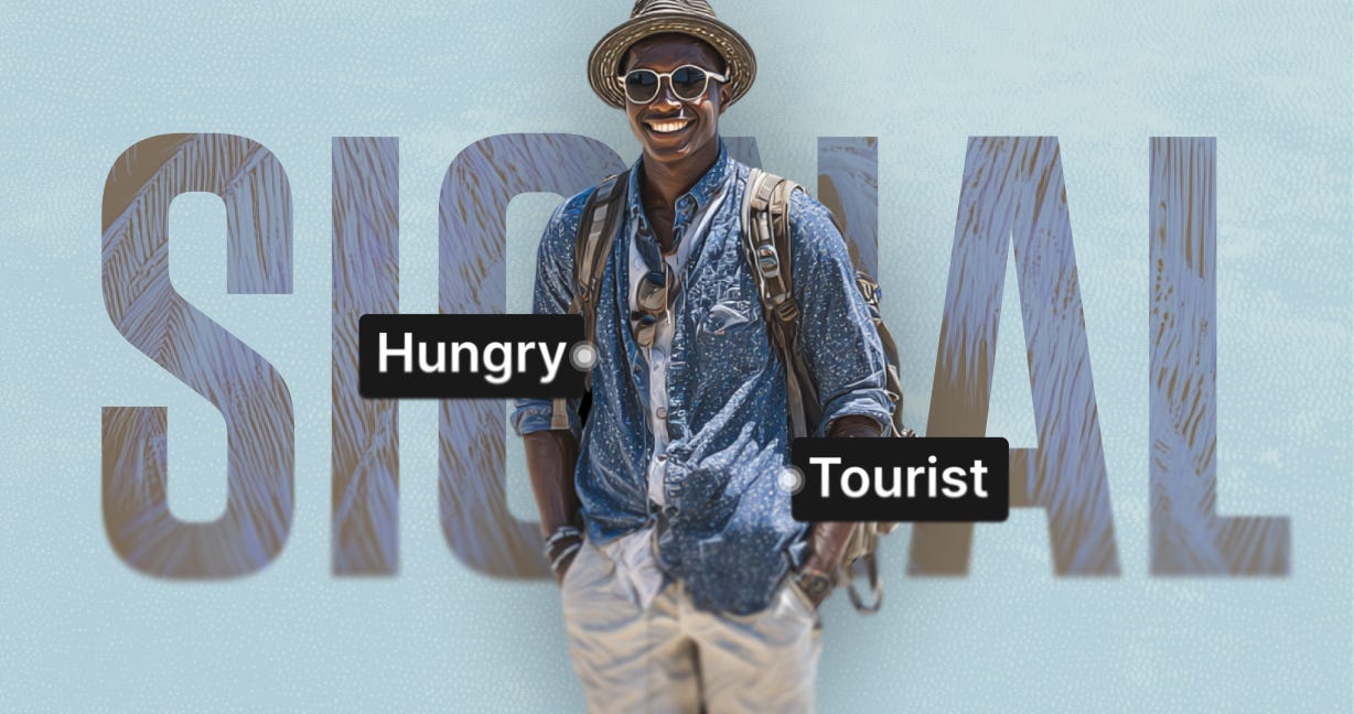 You know why? Because you sent a signal. You walked by not looking like a local, so you gotta be their ideal customer right?