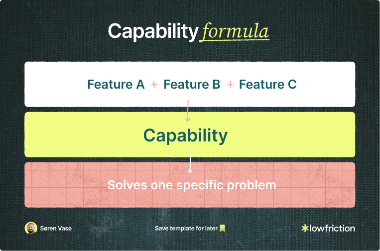 A single feature rarely solves a problem on its own. Often it’s multiple features that unlock one or more capabilities. And those we can map directly to a problem worth solving.