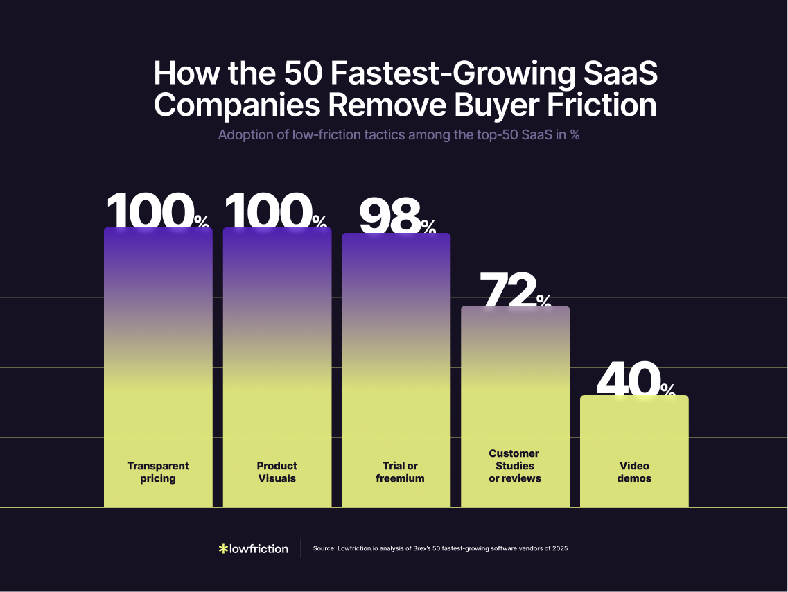100% of the fastest-growing SaaS companies lower buyer friction. The pattern is undeniable.