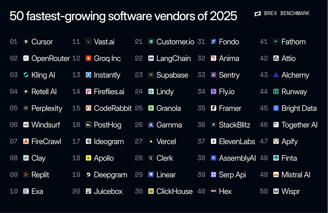 I saw this list of the 50 fastest-growing SaaS companies in 2025 from Brex.